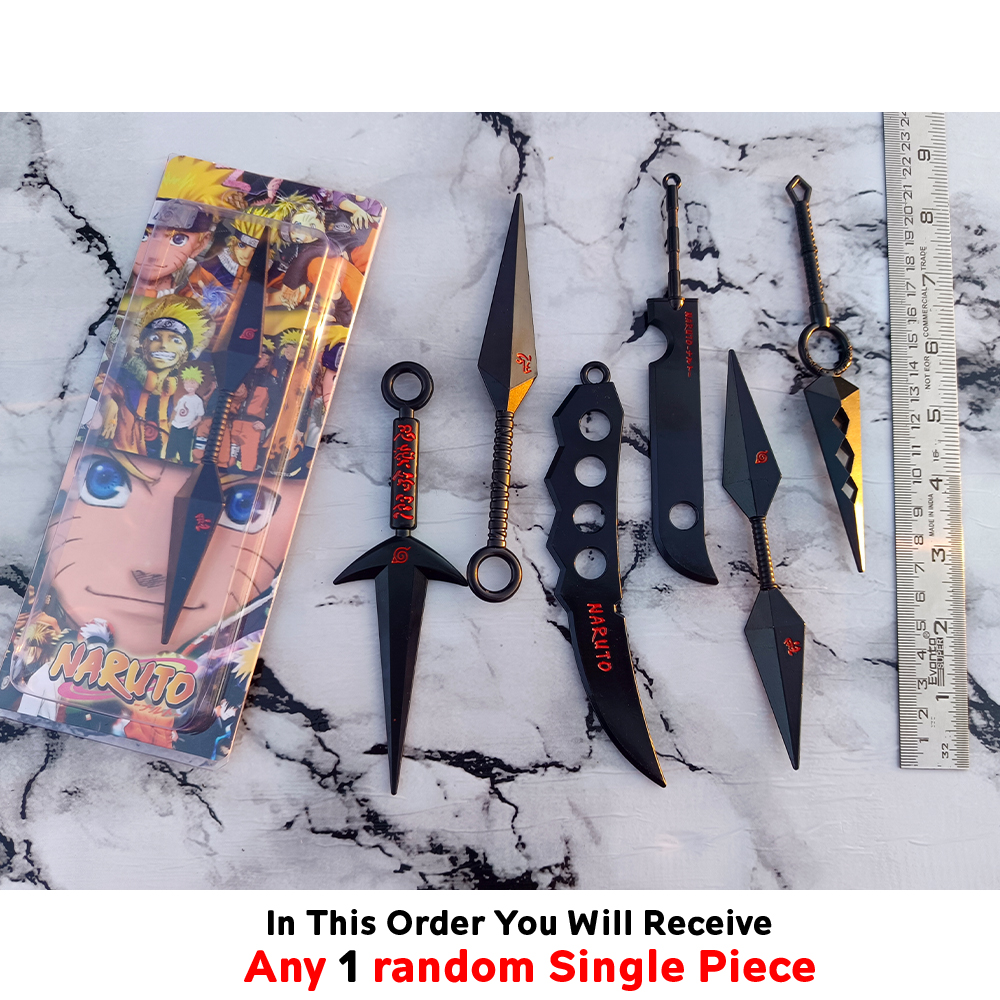 This listing includes ANY 1 RANDOM SINGLE PIECE from the shown designs, making every order a fun surprise for collectors and fans. Compact yet detailed, these kunai-style weapons are perfect for display, keychains, or anime décor.